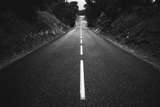 An empty secondary road winding through the Serra da Estrela mountains and natural park in the Guarda district, Beiras Region, Portugal. Mainland Portugal's highest mountains at 1993 meters.