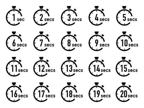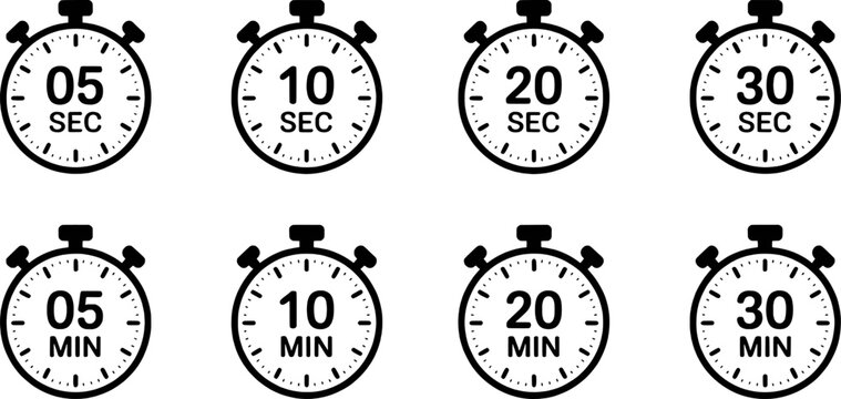 Stopwatch icons showing five ten twenty and thirty seconds and minutes timer time