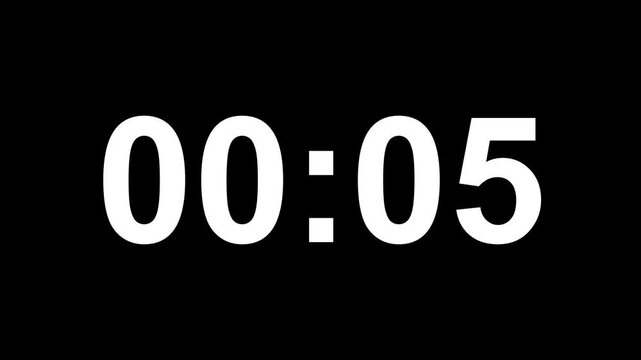Countdown timer from 6 to 0 seconds real time. Modern flat design of countdown isolated on transparent animation alpha channel on a black background. 4k animation.