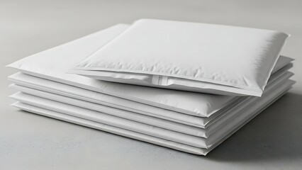 Neatly stacked white cushioned shipping envelopes providing essential protection for valuable goods