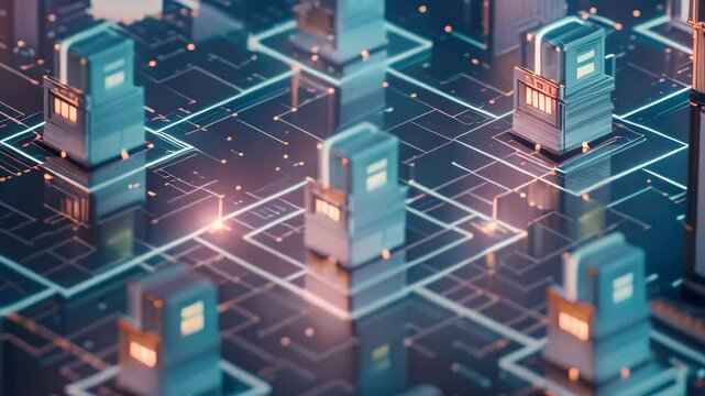 Modern high-tech data center with blue-lit racks of servers aligned in a corridor, representing information technology, advanced networks, and a secure data management system.