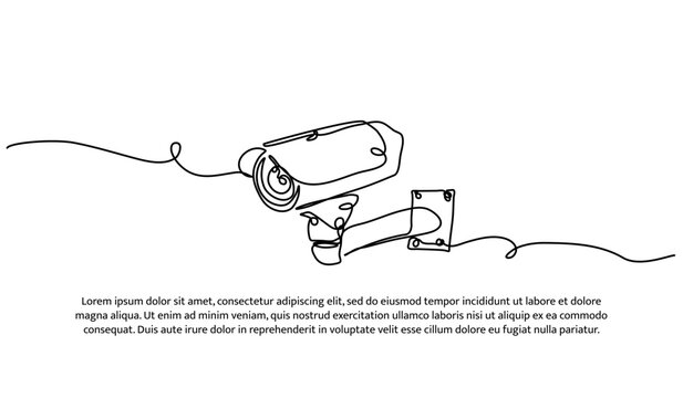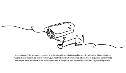 One line of surveillance camera. Abstract minimal continuous line isolated on white background.