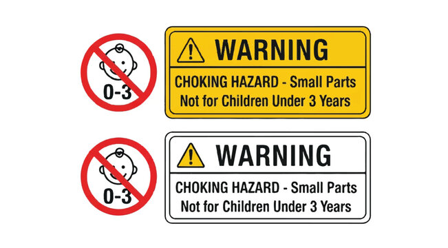 Warning Choking Hazard - Small Parts Not for Children Under 3 Years Sign on white background