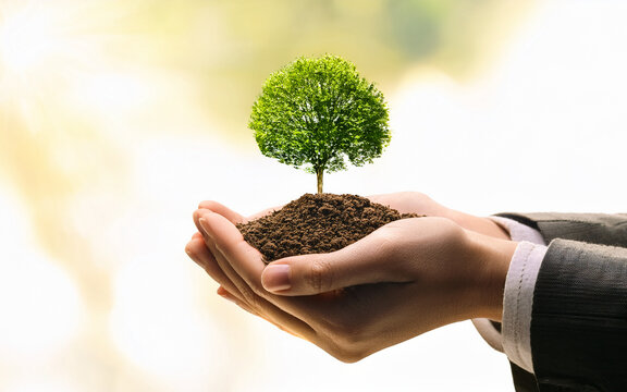 Earth Day Image: Human Hand Holding Soil with Green Plant
