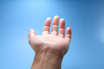 Elderly man promoting support and availability with gesture