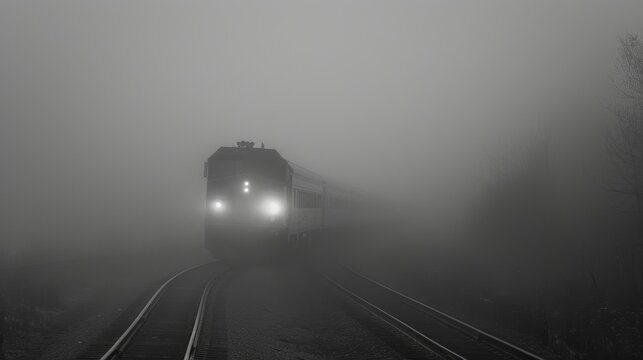 The fog plays tricks on the eyes making it seem like the train is gliding through a different dimension.