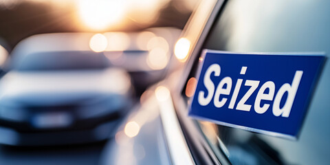 A car with blue Seized sticker on windshield