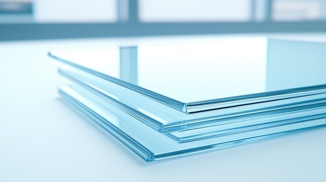 Transparent self cleaning float glass sheets pile. Window material sample