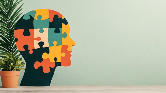 Abstract 3D of a puzzle head with pieces fitting together symbolizing the process of mental health recovery and therapy  The concept represents the journey of self discovery personal growth