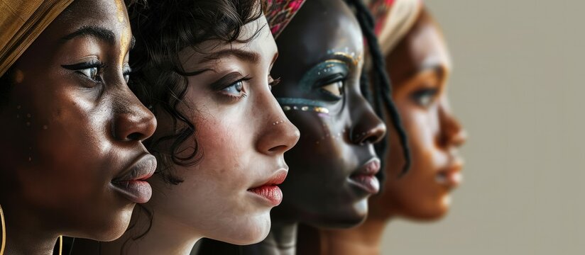 Group of multicultural confident young women determined for a change. Creative Banner. Copyspace image