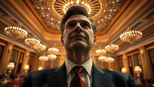 A person with a laptop computer sitting on a financial chart illustration symbolizing startup success, investment growth and planning, self made businessman finance strategy progress