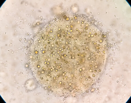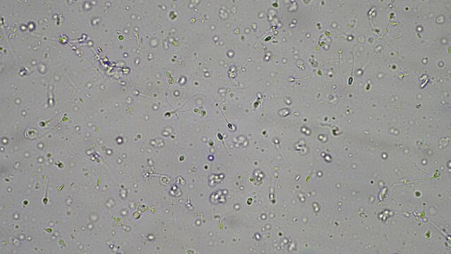 Sperm under the microscope. Looking a semen swimming. Healthy fertile man high sperm count