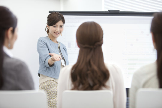 Professional businesswoman presenting at business conference