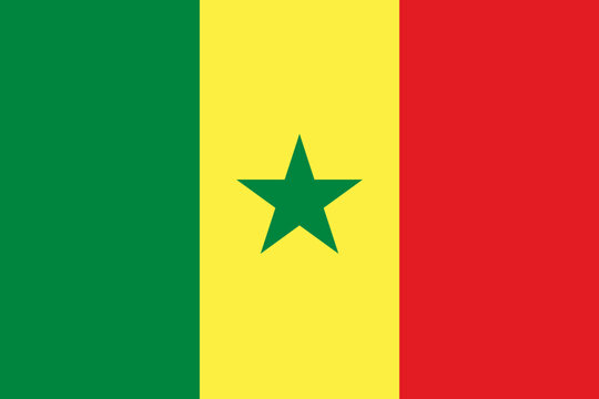 The official national flag of Senegal. Flag of the Republic of Senegal. Correct proportions and colors. Vector illustration