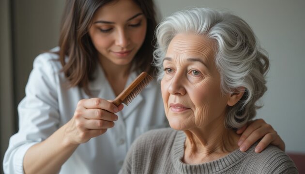 World alzheimer's month with caring nurse and senior woman sharing a moment