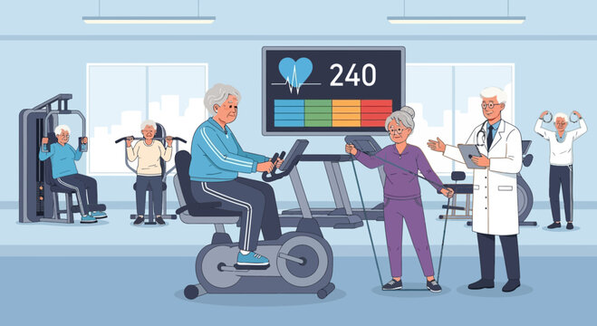Senior health and fitness: Elderly individuals engaging in physical therapy