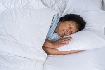 old age and people concept - senior woman sleeping in bed at home bedroom