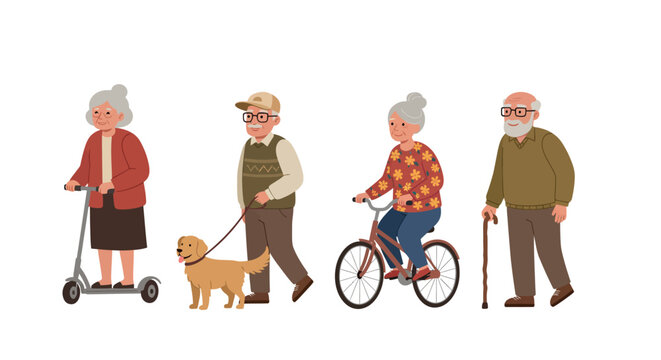 Retirees' Activities set. Engrossed in crafting, strategic games, and cycling, seniors showcase a blend of creative, intellectual, and physical vitality.