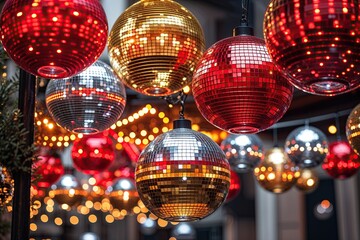 Lively Display of Colorful Disco Lights in Red Gold and Silver