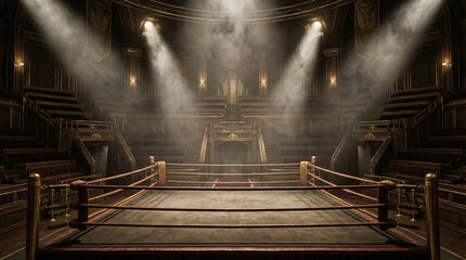 Empty stadium with energy efficiency rating chart for environmental awareness