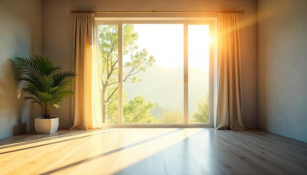Sunlight streams through a wide open window, illuminating a bright and airy interior space, conveying a sense of liberation and openness , design, nature, light