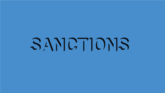 The Word 'Sanctions' Displayed in Stylized Font on a Solid Blue Background, Evoking a Sense of Restriction and Economic Consequences