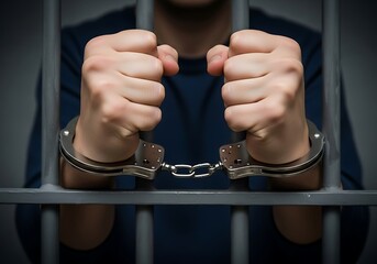 Imprisoned: A poignant portrayal of captivity, with hands gripping cold steel bars, a chilling representation of confinement and the somber weight of lost freedom.