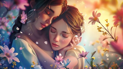 Loving couple embrace floral birthday card design