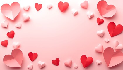 A pink background with a border of red and pink paper hearts for Valentine's Day
