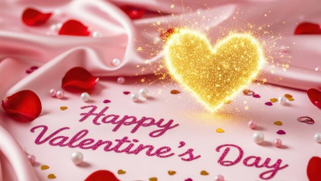 Happy valentines day greeting card with hearts on pink background for lovers with romance and romantic and red and text and celebration and festive