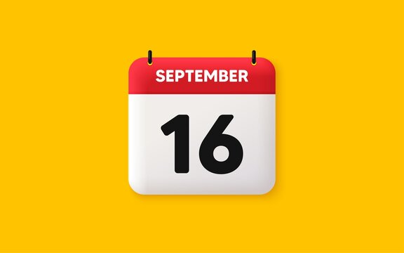 Calendar date 3d icon. 16th day of the month icon. Event schedule date. Meeting appointment time. Agenda plan, September month schedule 3d calendar and Time planner. 16th day day reminder. Vector
