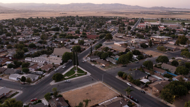 Coalinga, California, Mexico - September 2, 2024: Twilight evening traffic passes through the residential neighborhood district.