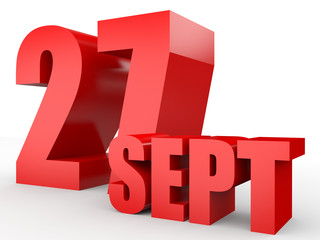 Cube shape calendar for SEPTEMBER 27 on white glossy background with reflection