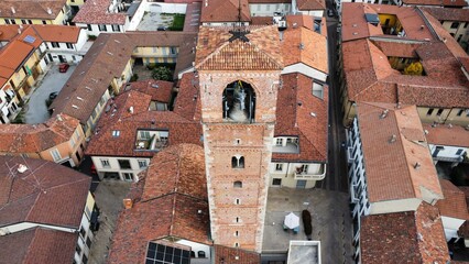 Veduta aerea della Torre del Barbarossa a Seregno, antico monumento medievale in Lombardia, simbolo storico e architettonico della città