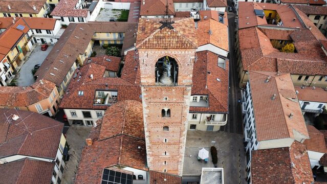 Aerial View of Seregno with Barbarossa Tower and Basilica, Italy