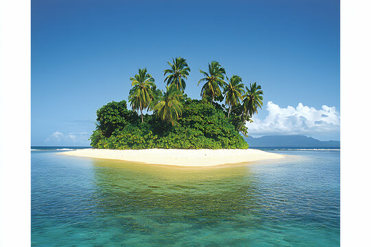 Ocean, tropical island, rocks, boats  ideal for travel brochures, vacation websites, and advertising materials with a serene, tropical theme. Generated AI
