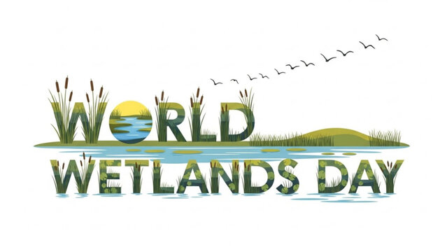 World wetlands day celebration with serene natural landscape and flying birds