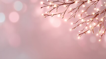 Delicate branches adorned with glowing lights against a soft pink background creating a serene and festive atmosphere for holiday celebrations