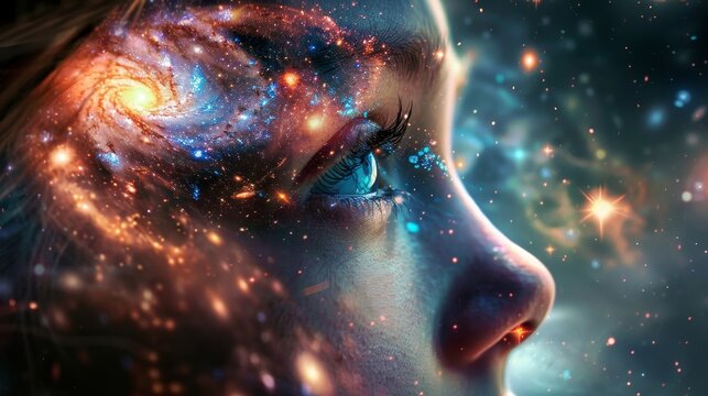 Woman Dreaming Celestial Galaxy Spiral Dreamlike Peaceful Art