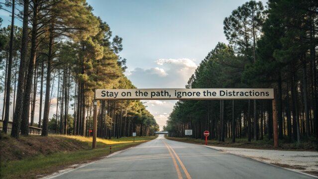 Stay on the Path, Ignore the Distractions Inspirational Road Sign