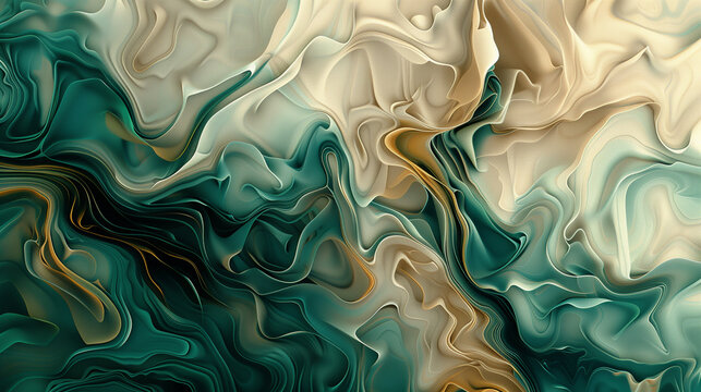 Beige Waves Dancing with Dark Green Abstracts.