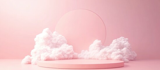 3D rendering of a serene pink sky with fluffy clouds and empty circular space for customizable text or graphic design purposes
