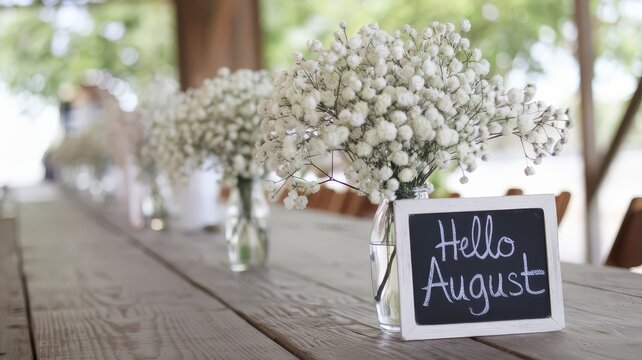August Baby Breath Floral Arrangement Rustic Venue Table Decor Summer Close-Up Seasonal Vibes