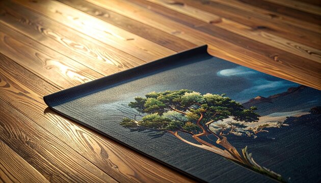 Luxurious yoga sessions incorporating plumeria essence take place in a serene setting with warm lighting, creating a peaceful wellness retreat that is ultra-detailed and offers a high-resolution,