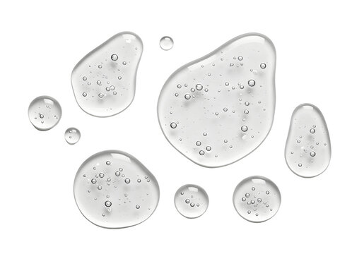 Transparent Serum Gel Drops Assorted clear serum drops on soft background. Excellent for skincare ingredient highlights or product promos