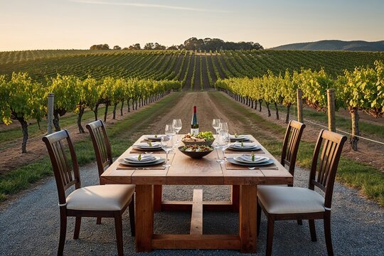 Elegant Wooden Dining Set for Fine Dining in Picturesque Vineyard Setting