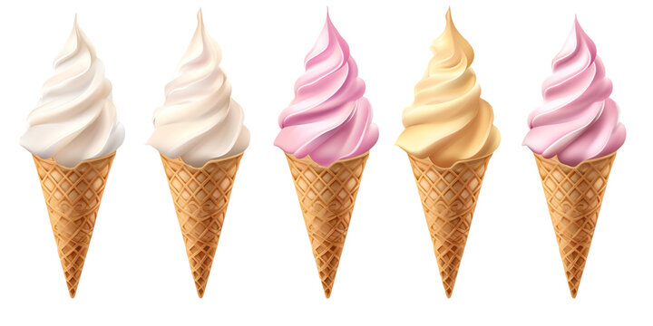 Many different templates Soft serve ice cream in a waffle cone on a transparent background, PNG file.