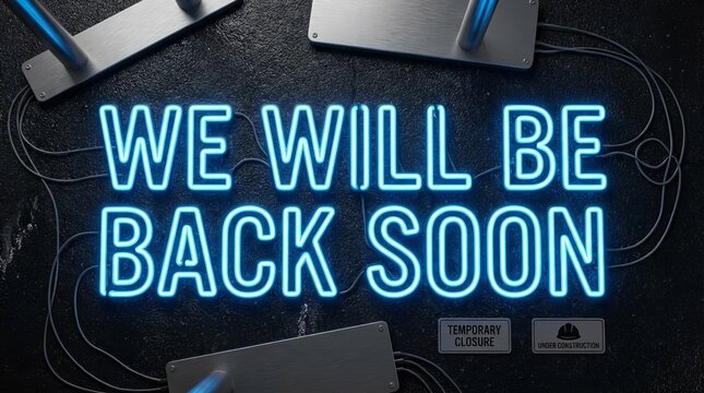 ‘WE WILL BE BACK SOON’ sign, symbolizing temporary closure and business under construction