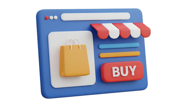 Laptop With Checkmark, Shop Building, Open Gift Box, Piggy Bank, and Shopping Bag in Clean 3D Style for Online Purchase, Savings, and Retail Projects. Vector Illustration.