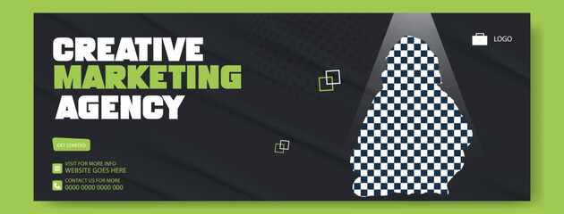 Creative marketing agency branding concept with young girl holding laptop and spotlight highlighting success and innovation